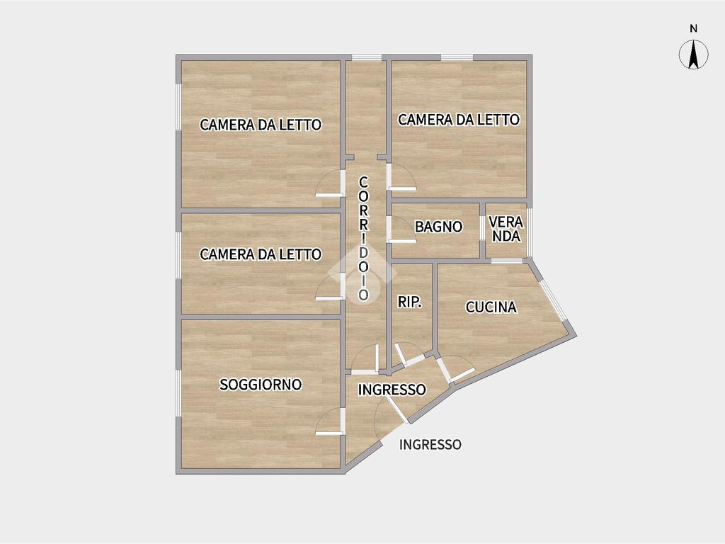 La disposizione interna comprende tre ampie camere da letto. Il soggiorno e la cucina sono separati, garantendo una migliore organizzazione degli spazi. Completa la zona servizi un comodo bagno finestrato con doccia. Una piccola veranda completa l’offerta.
